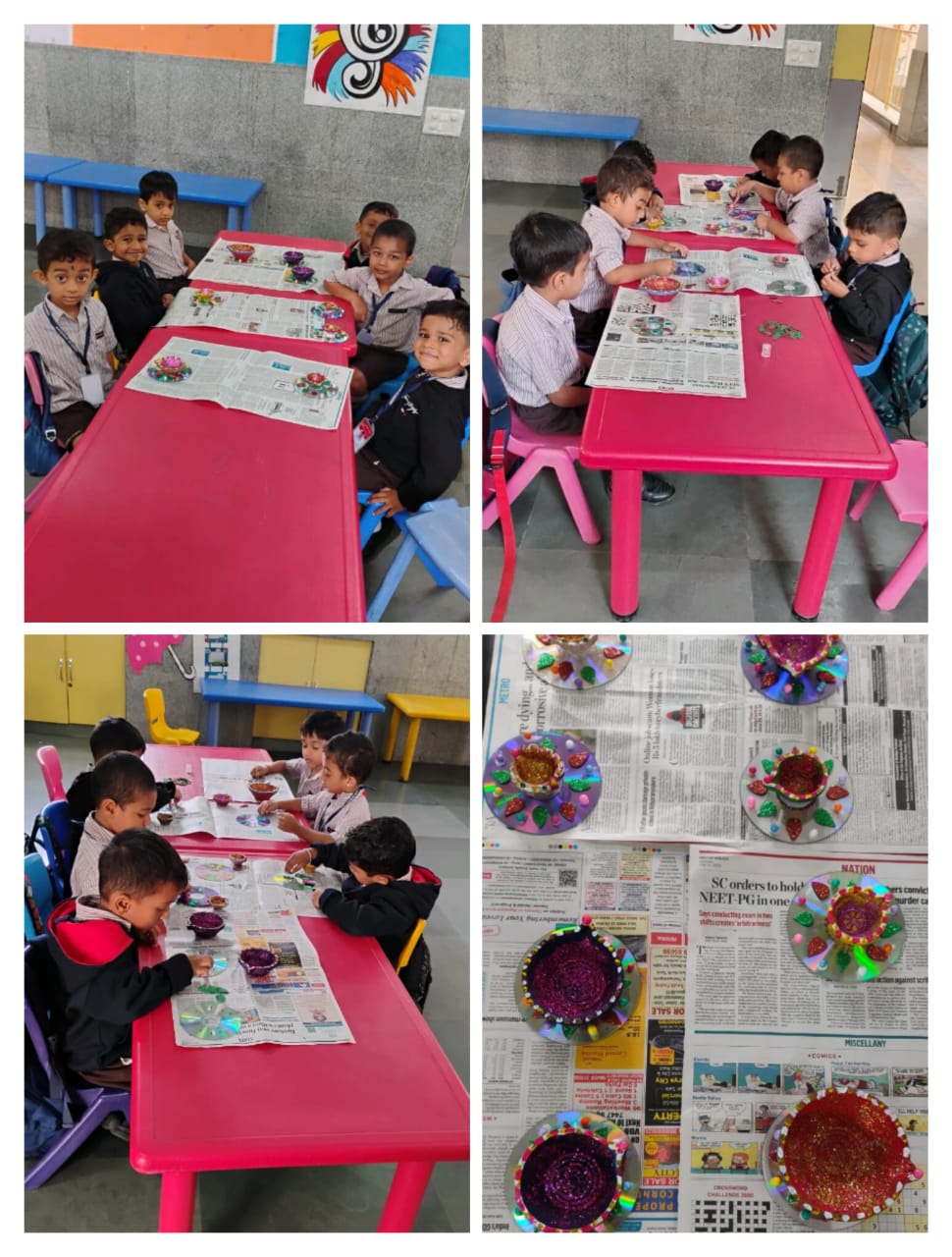 Little Hands, Bright Lights! Our nursery kids had a wonderful time decorating diyas with colors, sparkles, and endless joy! It was heartwarming to see their creativity shine as they prepared for the Festival of Lights. Wishing everyone a Diwali filled with the same innocence, happiness, and bright smiles that lit up our classrooms today!